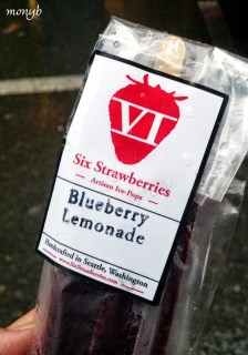 Stop 4: Six Strawberries. I’ve been a fan since they first hit the streets. The first time I tried their ice pops, I was hooked. It was a hot summer day and Vanessa was riding the bike around Ballard. I used the phone app (not sure they still use it) and Twitter to chat with Will to track her down. My first ice pop was blueberry lemonade and has been my favorite ever since. Last year, I went to their summer launch and had a fantastic time! Today, I topped off my savory foods with a sweet ice pop for dessert (blueberry lemonade, of course). It’s as good as the first time I tried it.