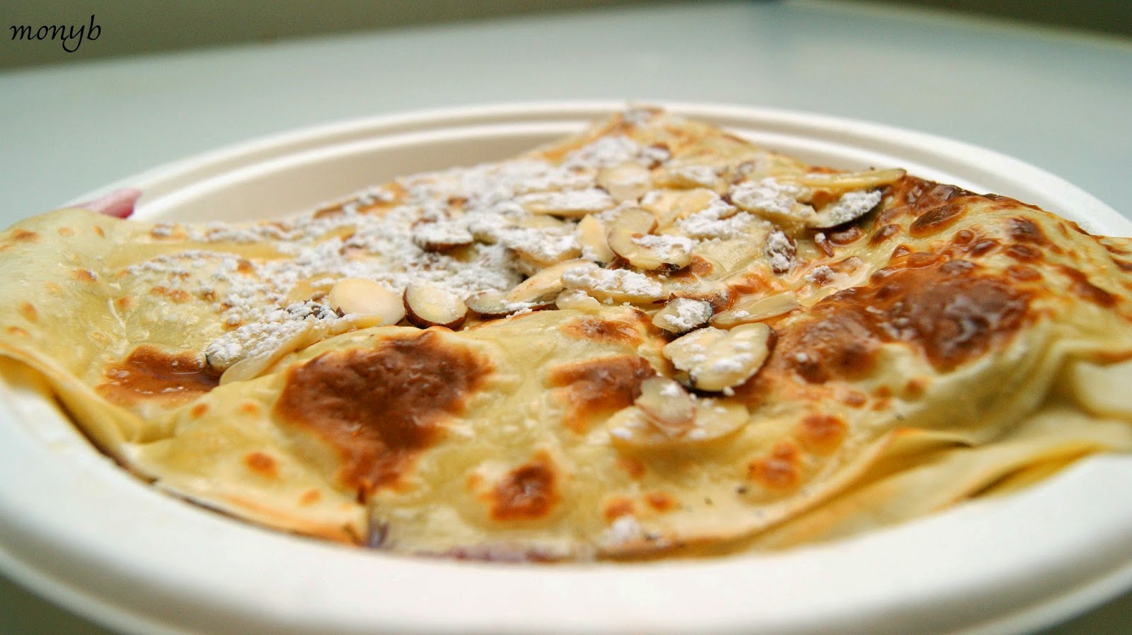 Stop 5: Crisp Creperie. I’ve been a fan of Crisp since the first time I tried their food around their 2nd week on the road. Tonight, they were selling desserts, and Jon was wearing his California Raisins shirt. If I’m not mistaken, he’s worn it for the last 2 Rodeos, perhaps the last 3. It’s a cool shirt and he’s a cool guy. Evan was his ever smiling self and they were busy as ever. I got the dark cherry + chocolate + ricotta. I love the hearty cherries and chunks of chocolate. The batter is one of my favorites. The way that the crepe is prepared with a bit of crisp is one of the reasons I continue to come back. Also, the rosemary lemonade is to die for! I typically just drink water but I swear, I can drink gallons of this.
