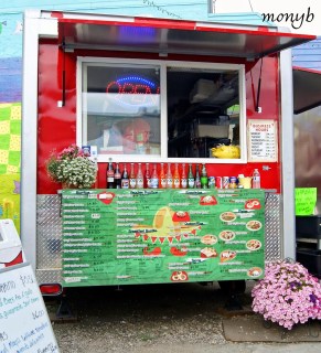 One of the pods I choose was Rose City Food Park located at NE Sandy Blvd & NE 52nd Ave. I have to say, this is a very family friendly place. Children all over the place, knocking things over, running around, and enjoying the food. I even tripped over a few which is really hard since I’m really, really short. There’s street parking and a good-sized lot to park in. There are tons of picnic tables to sit at (both covered and uncovered). You can also pick up produce from Kruger’s Farm City Farm Market which is a perk. They have bathrooms onsite that are large and fairly clean.