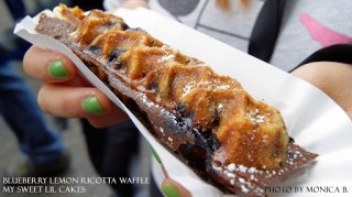 My favorite savory waffle is the chicken and waffle.  However, the last time I saw My Sweet lil Cakes, I tried this sweet waffle – blueberry lemon ricotta.  It was fantastic!  Constrasting flavors with ripe blueberries, citrusy lemon, and creaminess of the ricotta.  Again, perfect street food for traveling!