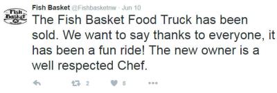 A few days ago, it was reported that the Fish Basket food truck has been sold to an undisclosed, well-respected chef.